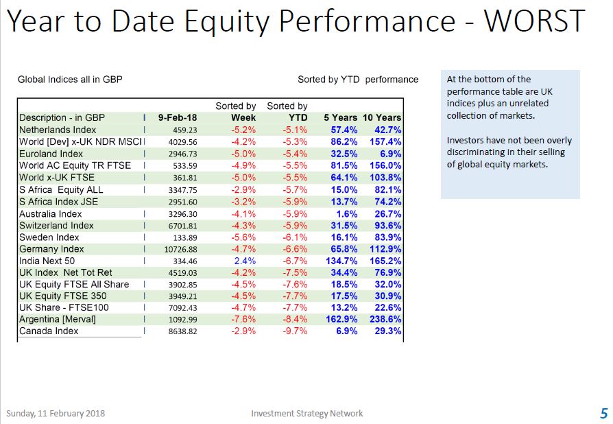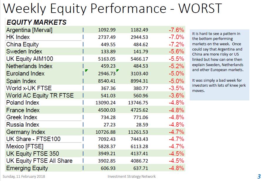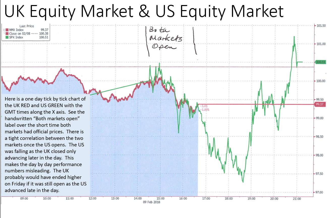 Although commentators normally emphasize the U.S. market, note that it was one of the better relative performing markets dropping “only” 2.6%. Although the above statement is true, it is misleading as the U.S. market stagged a rally in the last 2 hours. If global markets had been open, they likely would have also had some recovery.