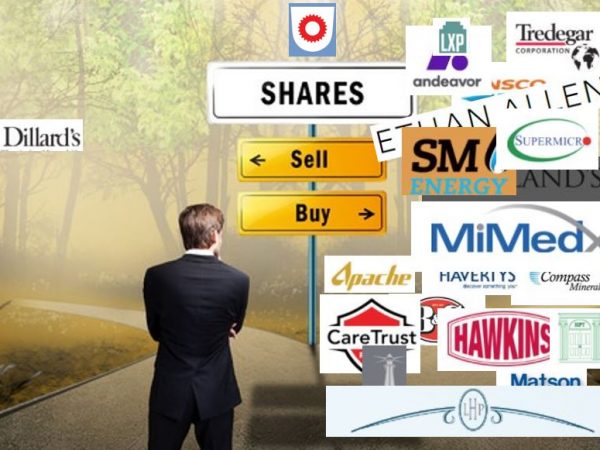19 stocks move into Buy Watch consideration: Andeavor [ANDV], Apache Corporation [APA], B&G Foods [BGS], Chatham Lodging Trust [CLDT], Compass Minerals [CMP], CareTrust REIT [CTRE], Ensco plc [ESV], Ethan Allen Interiors [ETH], Hospitality Properties [HPT], Haverty Furniture [HVT], Hawkins, Inc. [HWKN], Kirklands, Inc. [KIRK], LaSalle Hotel Properties [LHO], Lexington Realty [LXP], Matson, Inc [MATX], MiMedx Group [MDXG], SM Energy [SM], Super Micro Computer [SMCI], Tredegar Corp [TG],