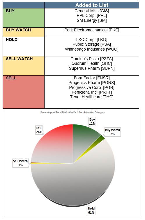 8 Stocks Moved into Buy Watch after Yesterday’s Market Fall but it did not Materially Change the Composition of the Buy, Hold, Sell Categories