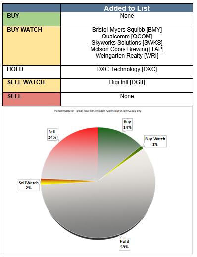Stock Consideration Change Report: U.S. Buy Watch considerations grow by 6 names. Bristol-Myers Squibb, Qualcomm and Molson Coors are starting to look attractive. Steven Albrecht on April 22, 2018 Buy Watch considerations grow by 6 names. Category: Uncategorized Post navigation Previous: Previous post: Stock Consideration Change Report: U.S.Next: Next post: Stock Fair Value Report: U.S., Update Posted by Steven Albrecht All Posts