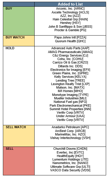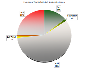 Hold considerations grow as 21 stocks move back to inside normal valuation ranges. But, Sell and Sell Watch now represent 27% of the market overall.