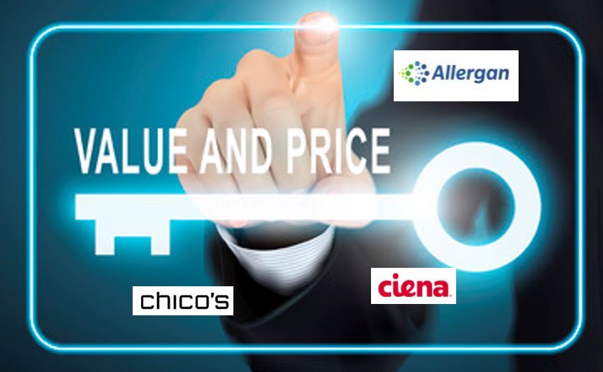 Allergan moves down while Chico’s and Ciena enjoy increases.